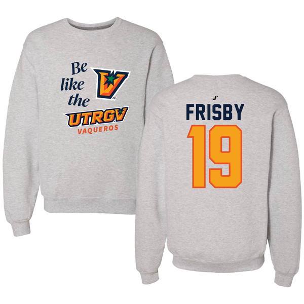 The University of Texas Rio Grande Valley Soccer Light Gray Be Like Us Crewneck - #19 Savannah Frisby
