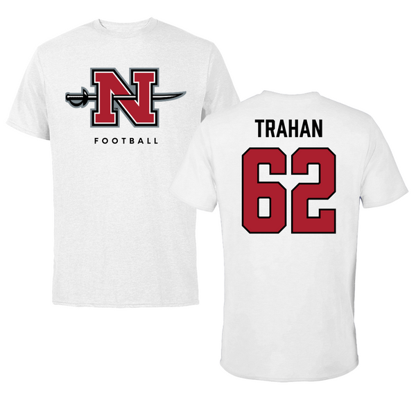 Nicholls State University Football White Tee - #62 Seth Trahan