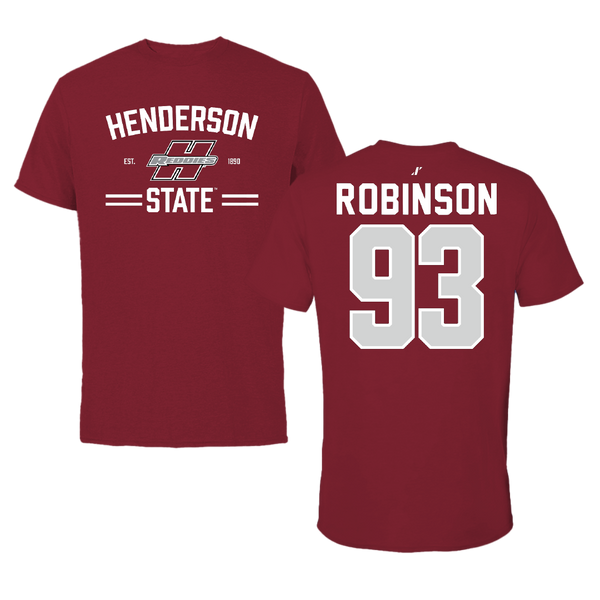 Henderson State University Football Cardinal Tee - #93 Shaq'ke Robinson