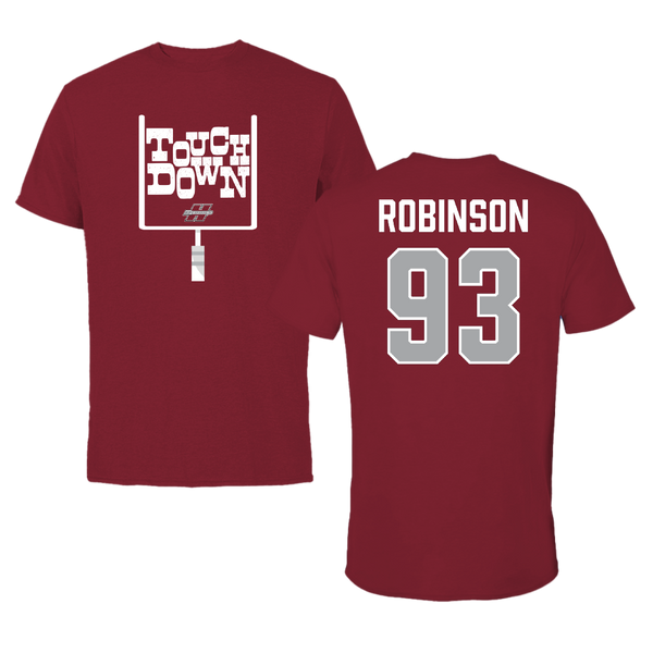 Henderson State University Football Cardinal Touchdown Tee - #93 Shaq'ke Robinson