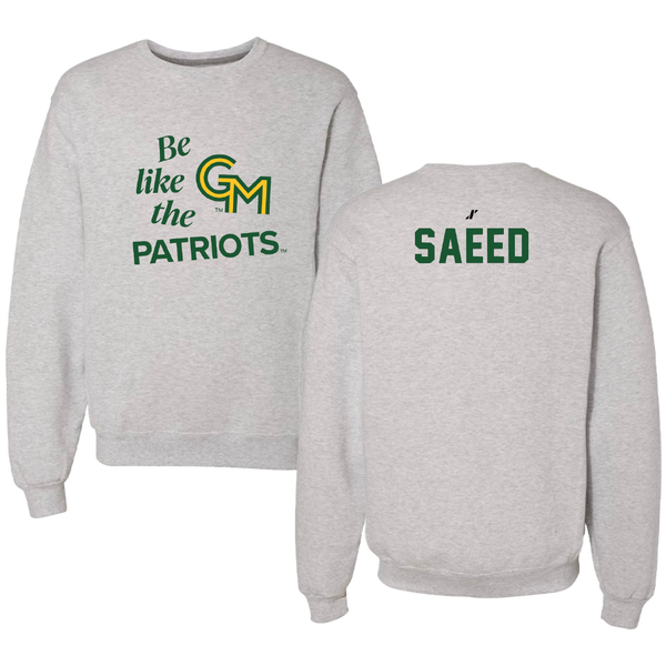 George Mason University Tennis Light Gray Be Like Us Crewneck - Shari Saeed