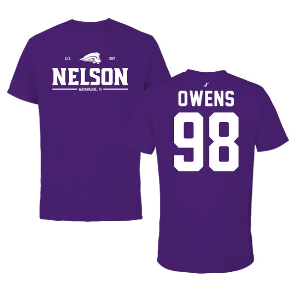 Nelson University Football Purple Gameday Tee - #98 Shawntay Owens