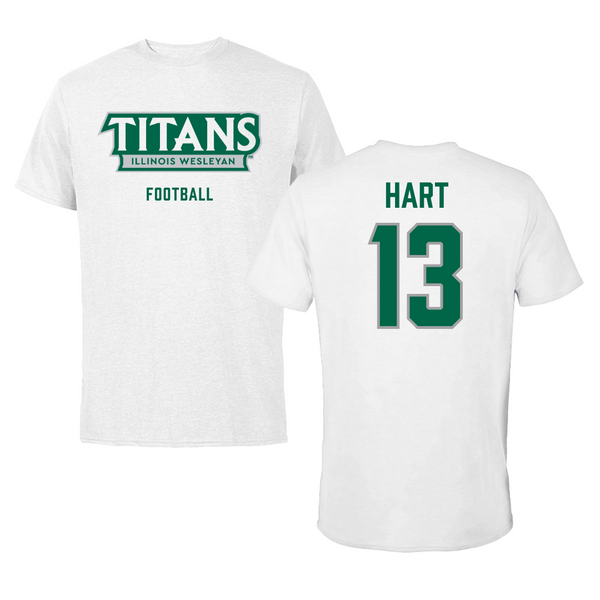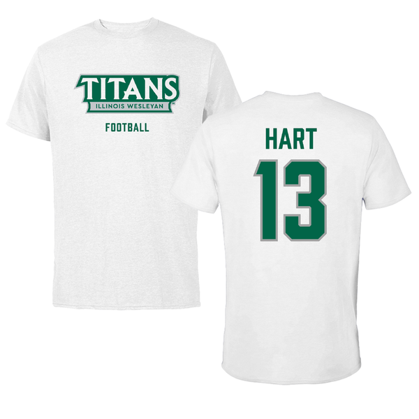 Illinois Wesleyan University Football White Tee - #13 Shyne Hart