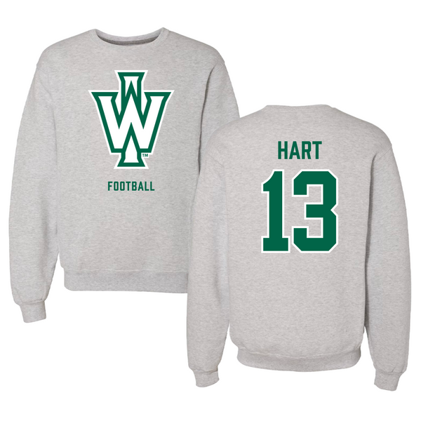 Illinois Wesleyan University Football Gray Crewneck - #13 Shyne Hart