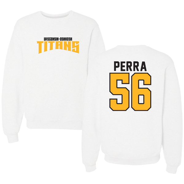 University of Wisconsin-Oshkosh Football White Classic Crewneck - #56 Spiro Perra