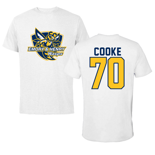 Emory & Henry College Football White Tee - #70 Tacori Cooke