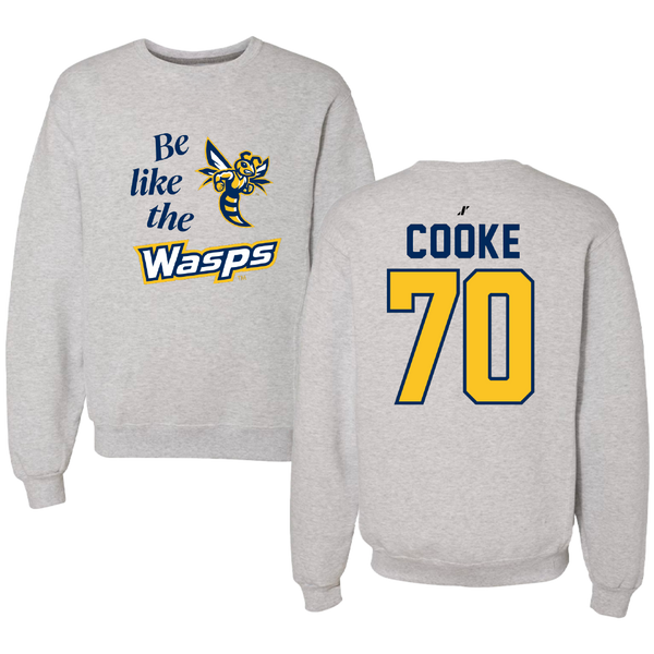 Emory & Henry College Football Light Gray Be Like Us Crewneck - #70 Tacori Cooke