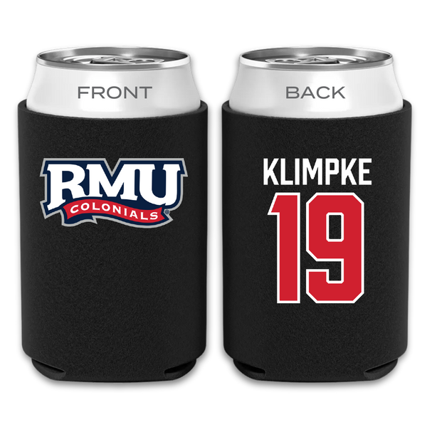 Robert Morris University Ice Hockey Black Can Cooler - #19 Tanner Klimpke