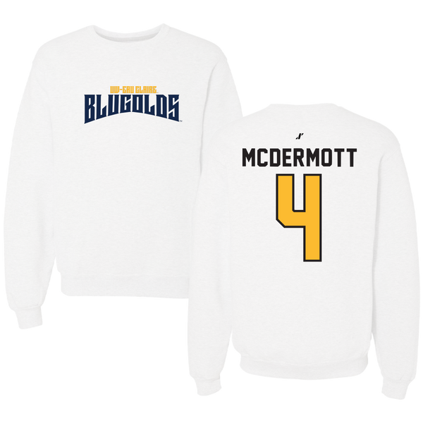 University of Wisconsin-Eau Claire Soccer White Classic Crewneck - #4 Tate McDermott