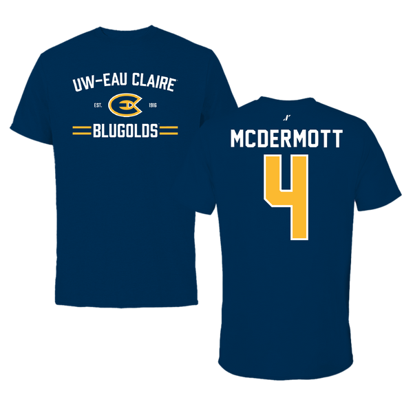 University of Wisconsin-Eau Claire Soccer (M) Navy Tee - #4 Tate McDermott