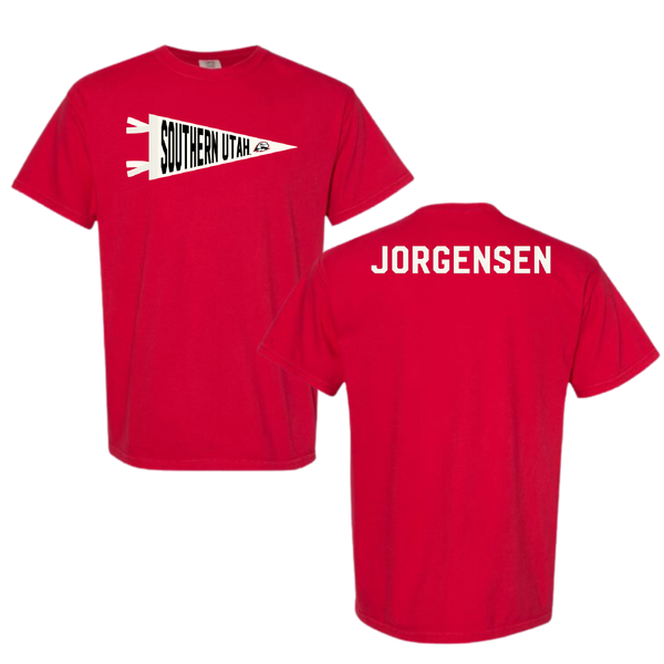 Southern Utah University TF and XC Red Pennant Comfort Colors Tee - Taylor Jorgensen