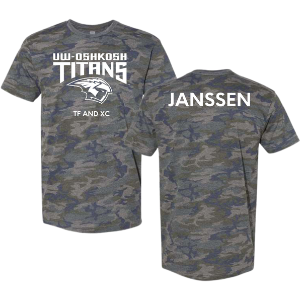 University of Wisconsin-Oshkosh TF and XC Vintage Camo Tee - Tray Janssen