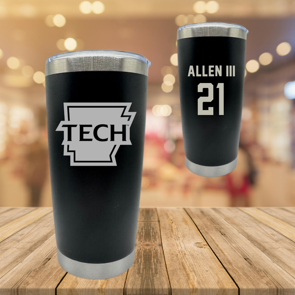 Arkansas Tech University Basketball Black Stainless Steel Tumbler - #21 Trey Allen III