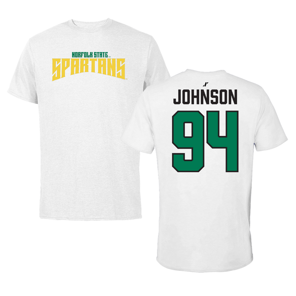 Norfolk State University Football White Classic Performance Tee - #94 Tyler Johnson