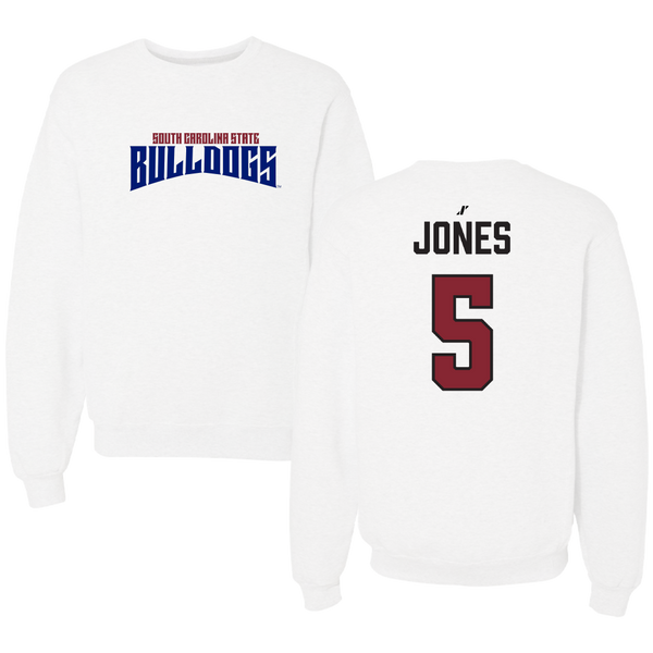 South Carolina State University Football White Classic Crewneck - #5 Tyler Jones
