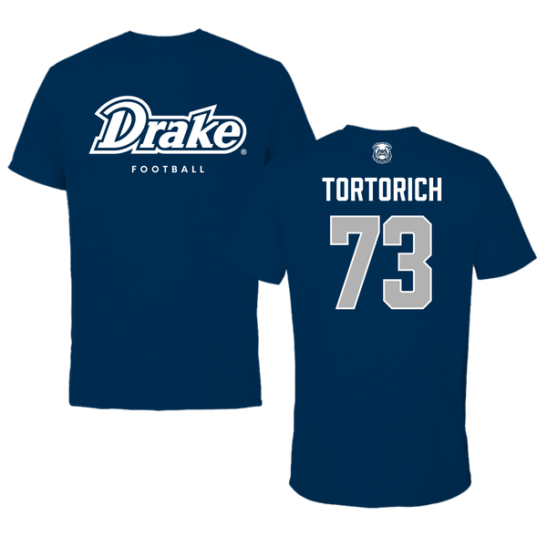 Drake University Football Navy Tee - #73 Tyler Tortorich