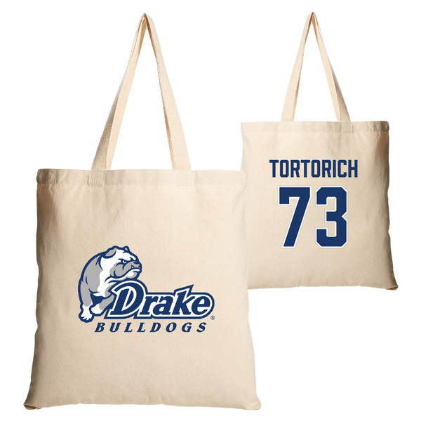 Drake University Football Tan Canvas Tote Bag - #73 Tyler Tortorich