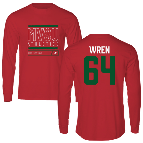 Mississippi Valley State University Football Red Dominate Long Sleeve - #64 Tyler Wren