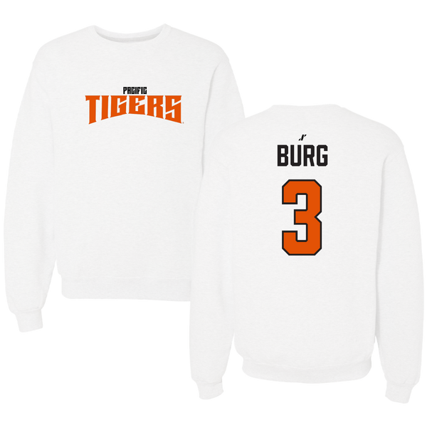 University of the Pacific Basketball White Classic Crewneck - #3 Hannah Burg