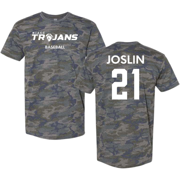 North Iowa Area Community College Baseball Vintage Camo Tee - #21 Vincent Joslin