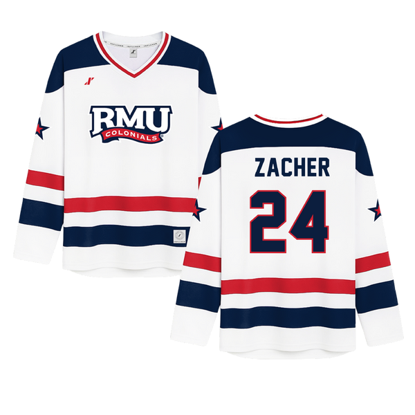 Robert Morris University White Hockey Jersey - #24 Walter Zacher