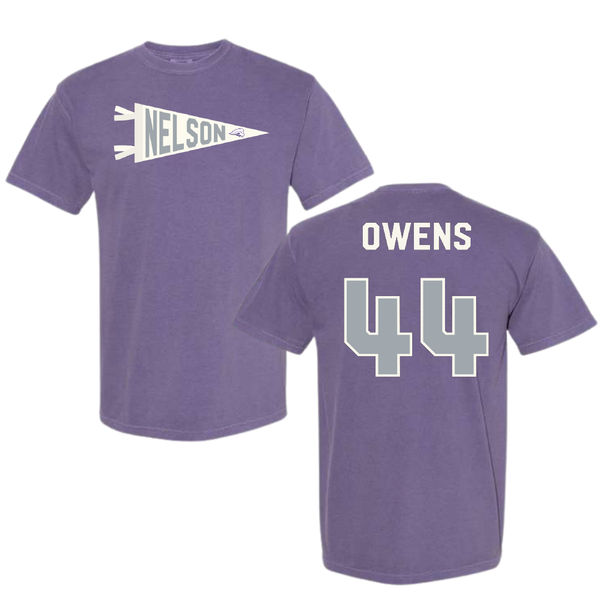 Nelson University Soccer Purple Pennant Comfort Colors Tee - #44 Winston Owens