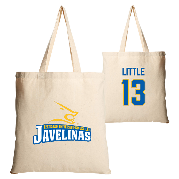 Texas A&M University-Kingsville Basketball Tan Canvas Tote Bag - #13 Zyon Little