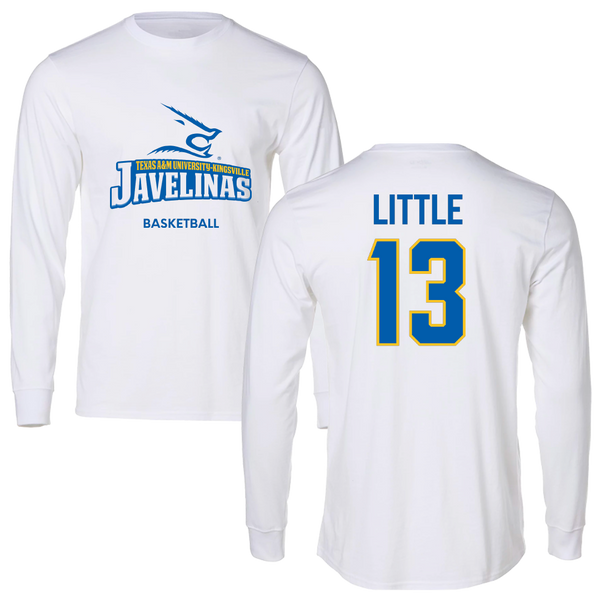 Texas A&M University-Kingsville Basketball (M) White Long Sleeve - #13 Zyon Little