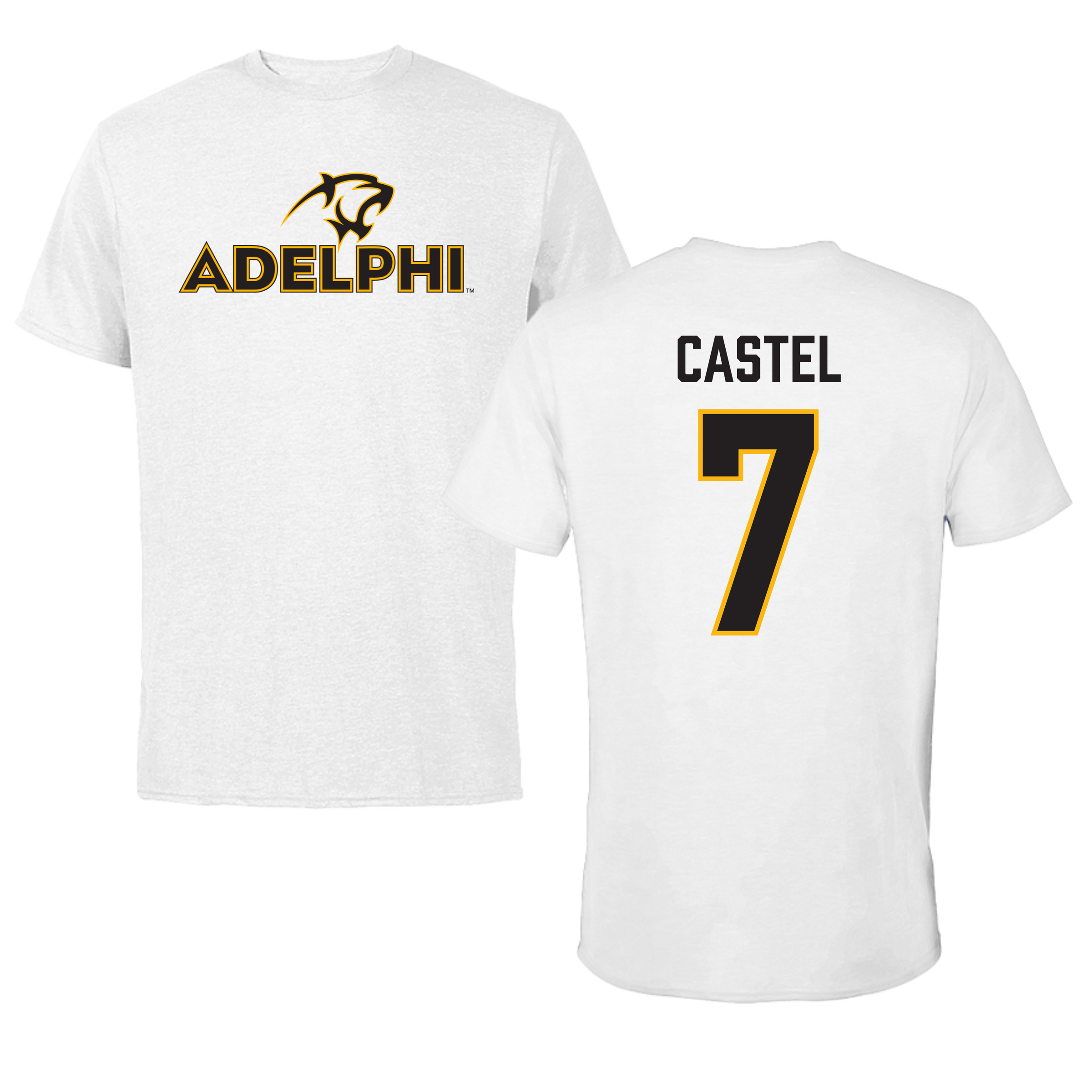 Adelphi University Soccer White Tee - #7 Victor Castel