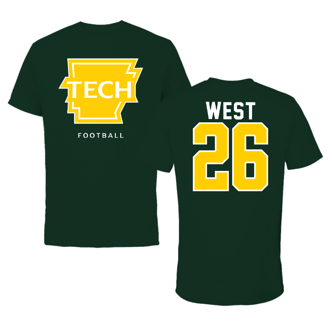 Arkansas Tech University Football Forest Green Tee - #26 Myles West