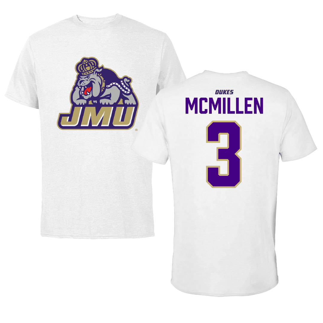 James Madison University Soccer White Performance Tee - #3 Jordan McMillen