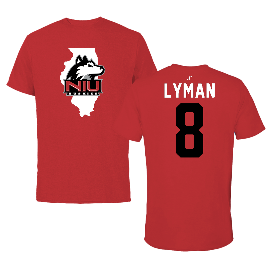 Northern Illinois University Baseball Red State Tee - #8 John Lyman