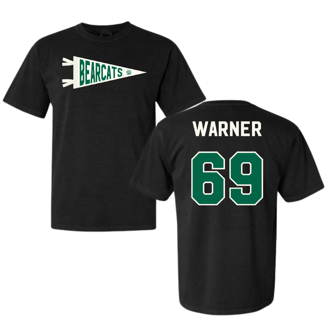 Northwest Missouri State University Football Black Pennant Comfort Colors Tee - #69 Trent Warner