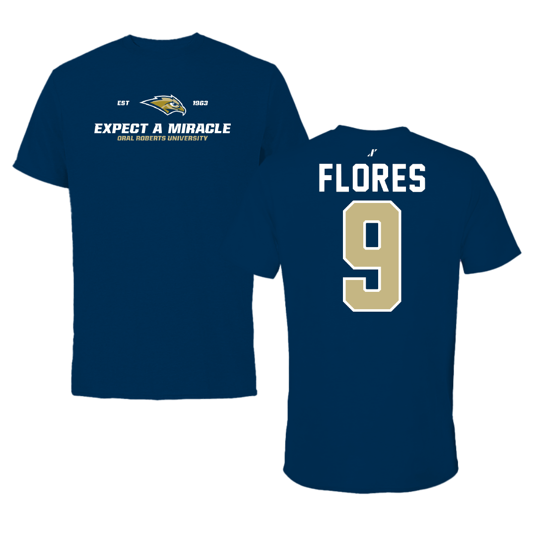 Oral Roberts University Soccer Navy General Tee - #9 Luis Flores