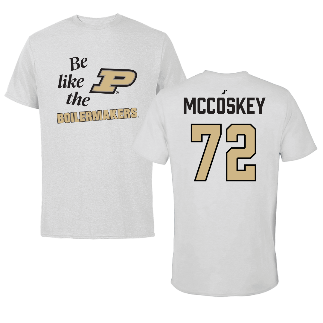 Purdue University Football Light Gray Be Like Us Tee - #72 Jude McCoskey