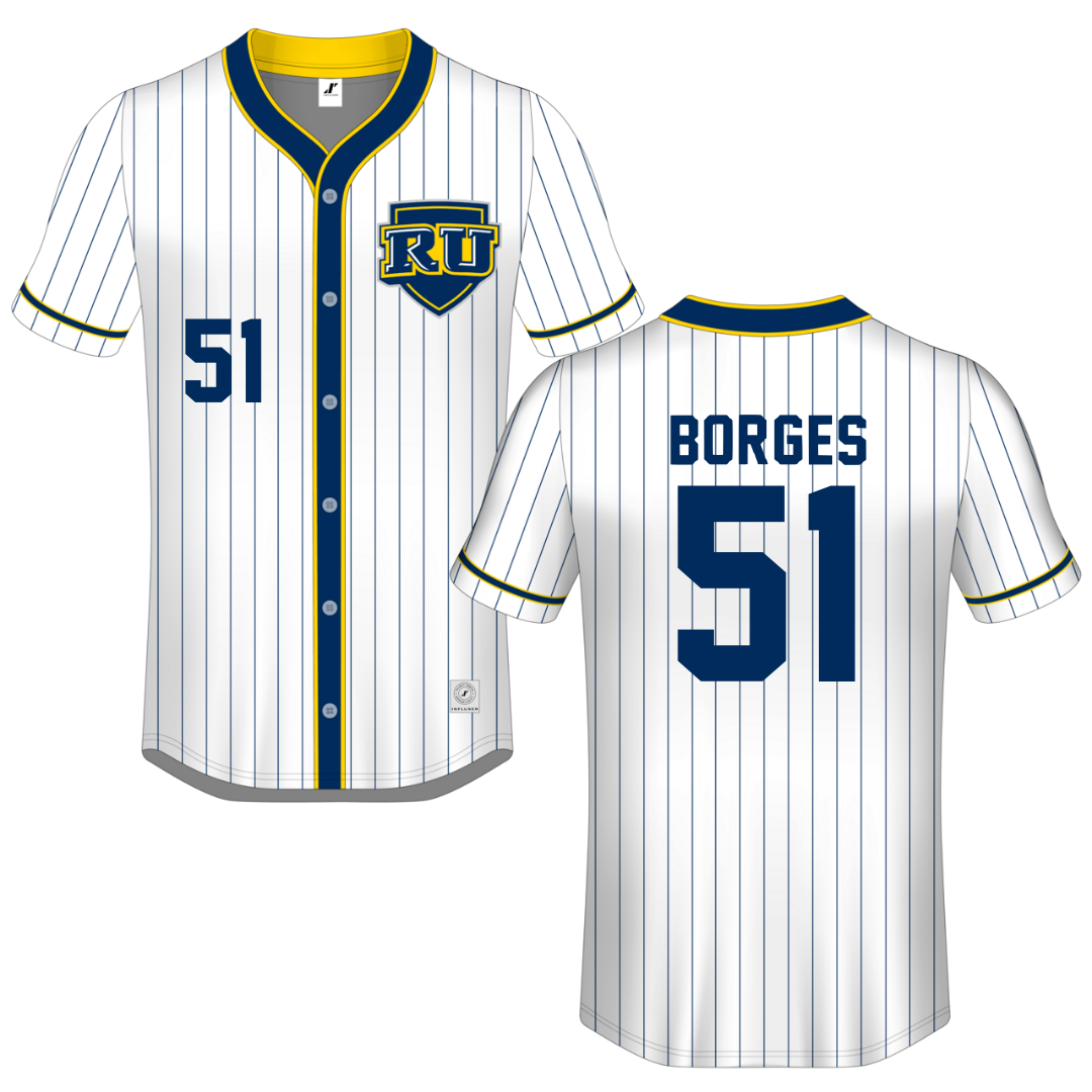 Regis University (Colorado) White Pinstripe Button-Down Jersey - #51 Carson Borges