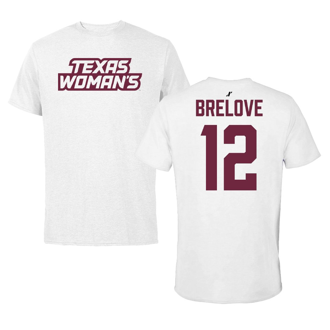 Texas Woman's University Soccer White Tee - #12 Erica Brelove