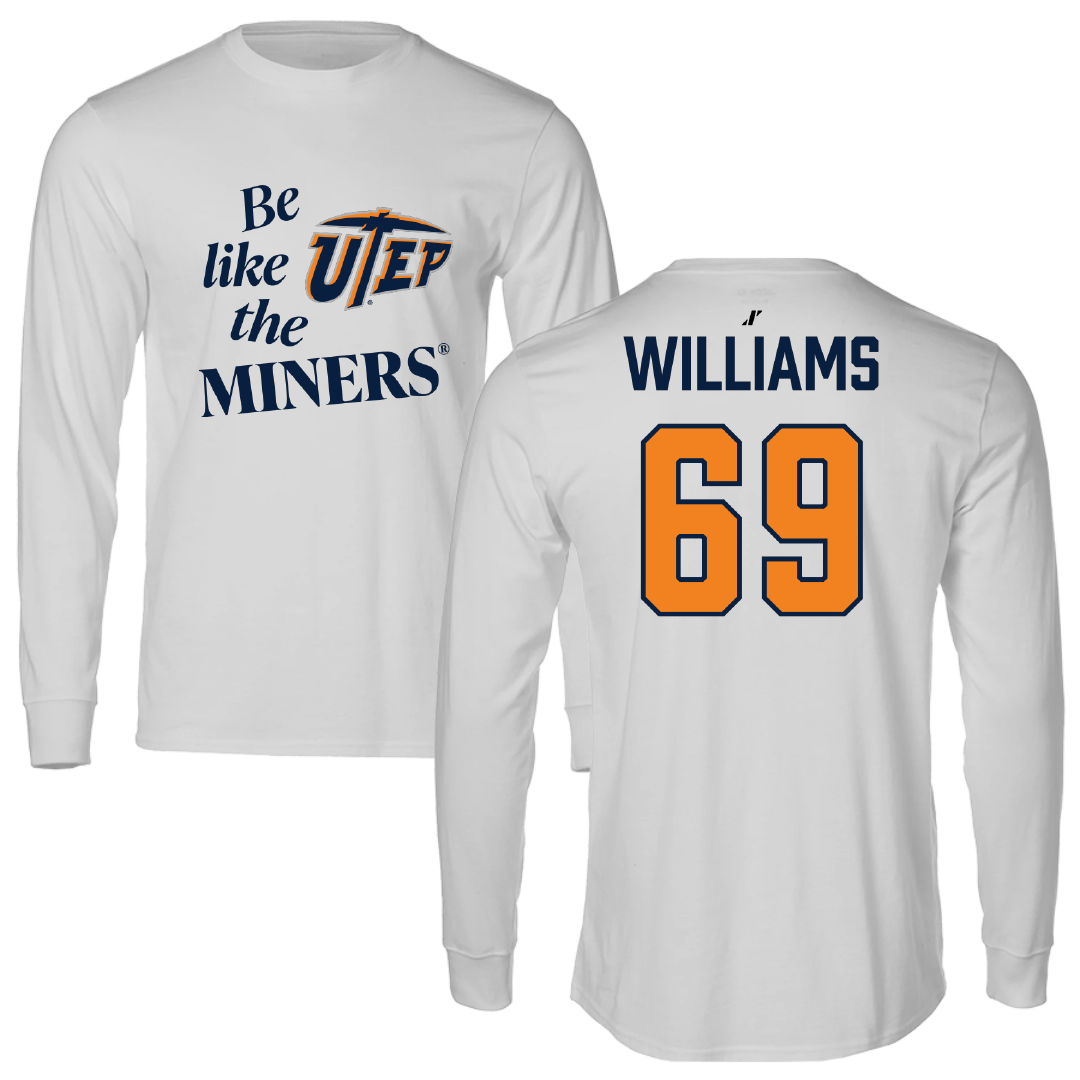 University of Texas at El Paso Football Light Gray Be Like Us Long Sleeve - #69 James Williams