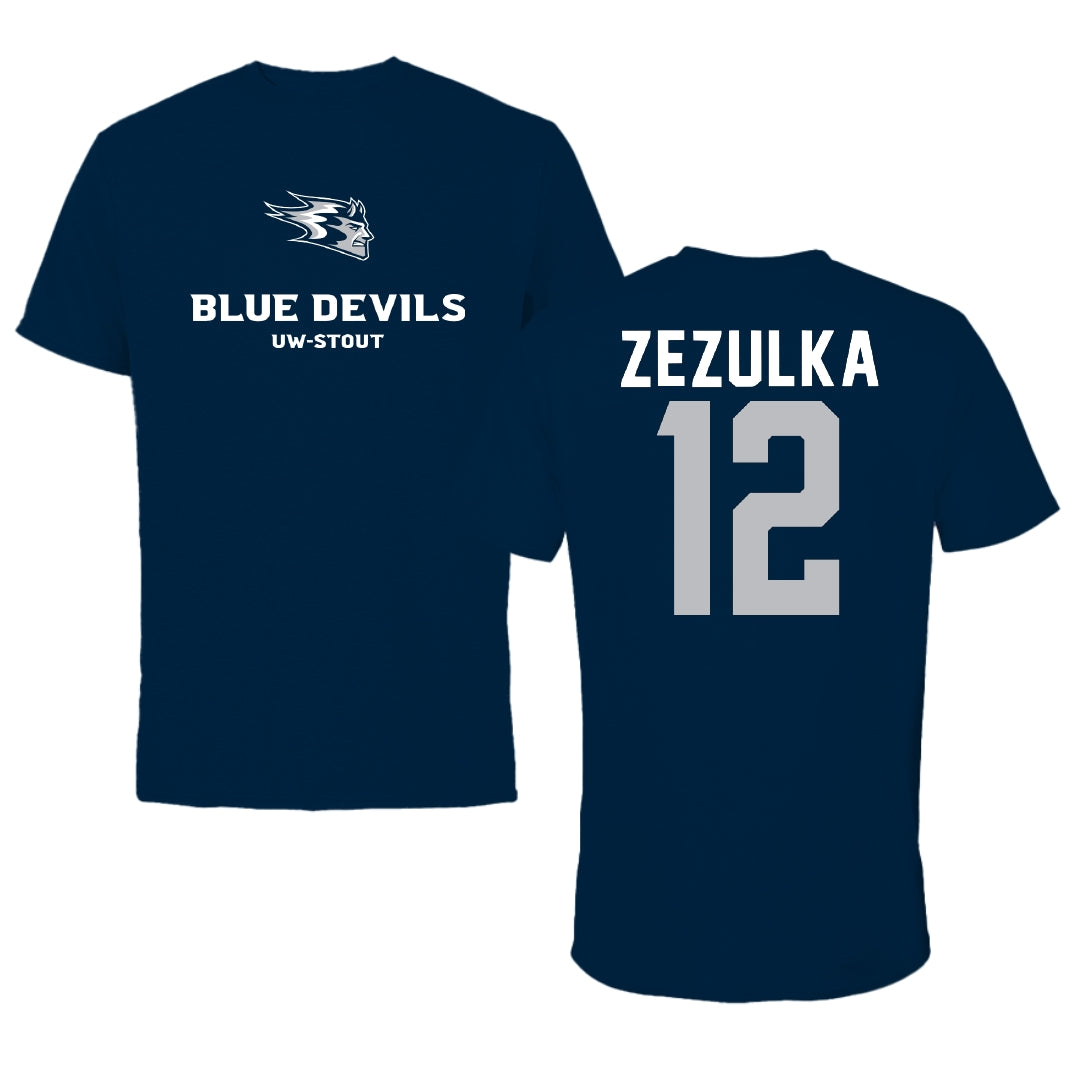 University of Wisconsin-Stout Football Navy Tee - #12 Carter Zezulka
